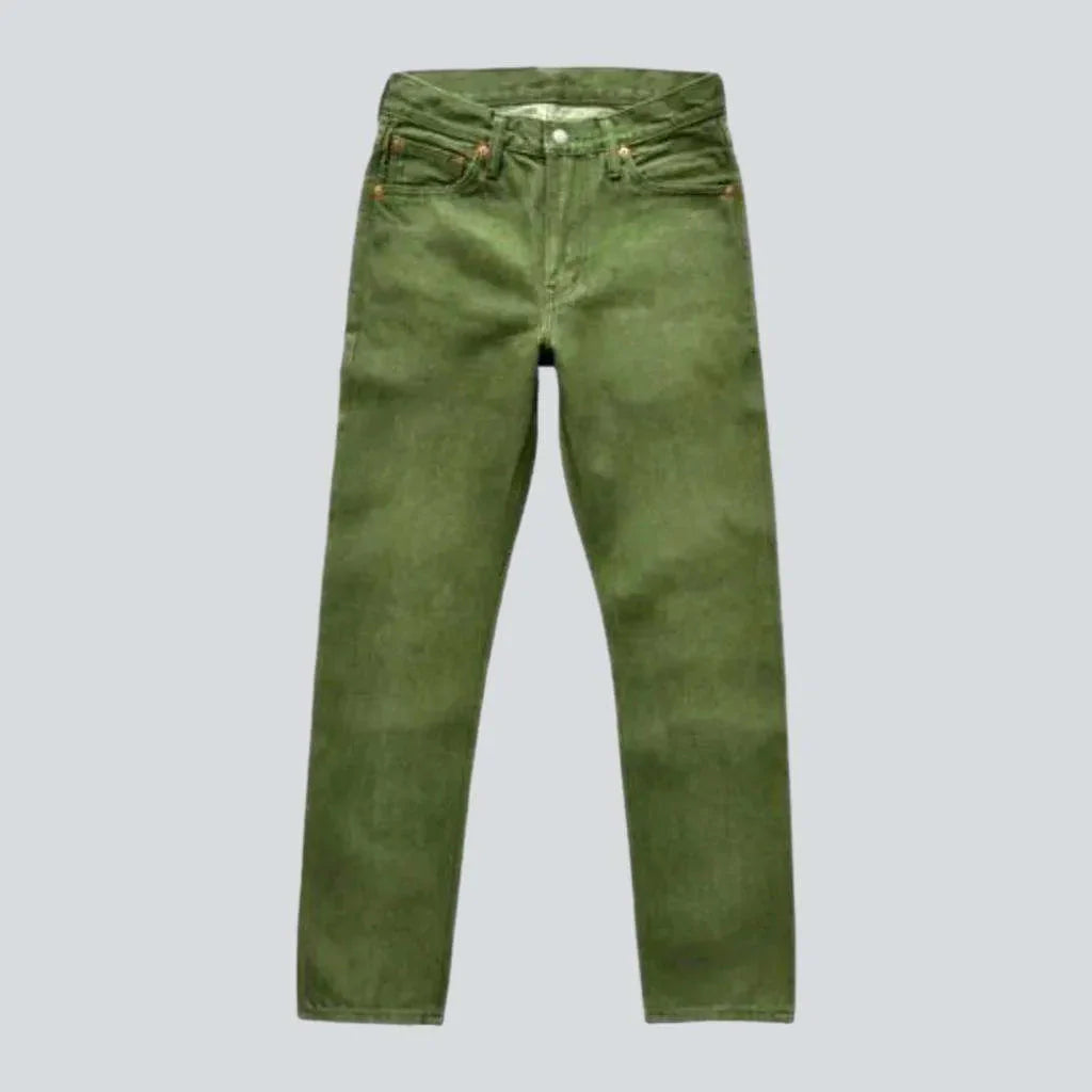 These jeans are crafted from high-quality. heavyweight denim. designed to keep you comfortable all day full-length. The unique selvedge style is sure to turn heads. while the tall-waist and khaki color make for a timelessly fashionable look. The zipper and button closure ensures a snug cut that's perfect for any occasion. and the 14oz slim fit is sure to make you look your best.