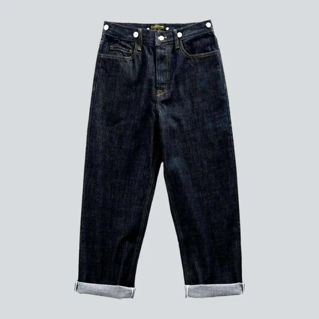 Behold the beauty of our timeless raw denim jeans. Crafted with care. this mid-waist buttoned rise design offers unbeatable comfort and aged vibes. Our heavyweight 15oz selvedge vibe ensures durability and steady style. The zipper and button closure adds the perfect finishing touch to this timeless piece.