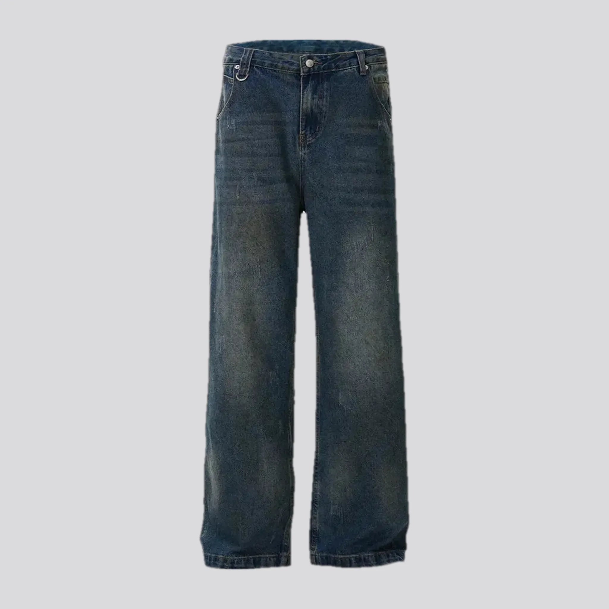 Introducing our men's jeans. a perfect blend of nostalgic 90s vibes and contemporary style. ideal for your spring and summer wardrobe. Crafted from premium denim. these mid-waist jeans feature a long length that complements your casual. street-style outfits effortlessly.