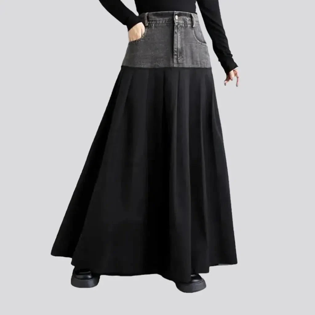 Introducing our a-line long jean skirt for ladies from the Spring-Summer Collection a fashionable fusion of vintage charm and contemporary grace!