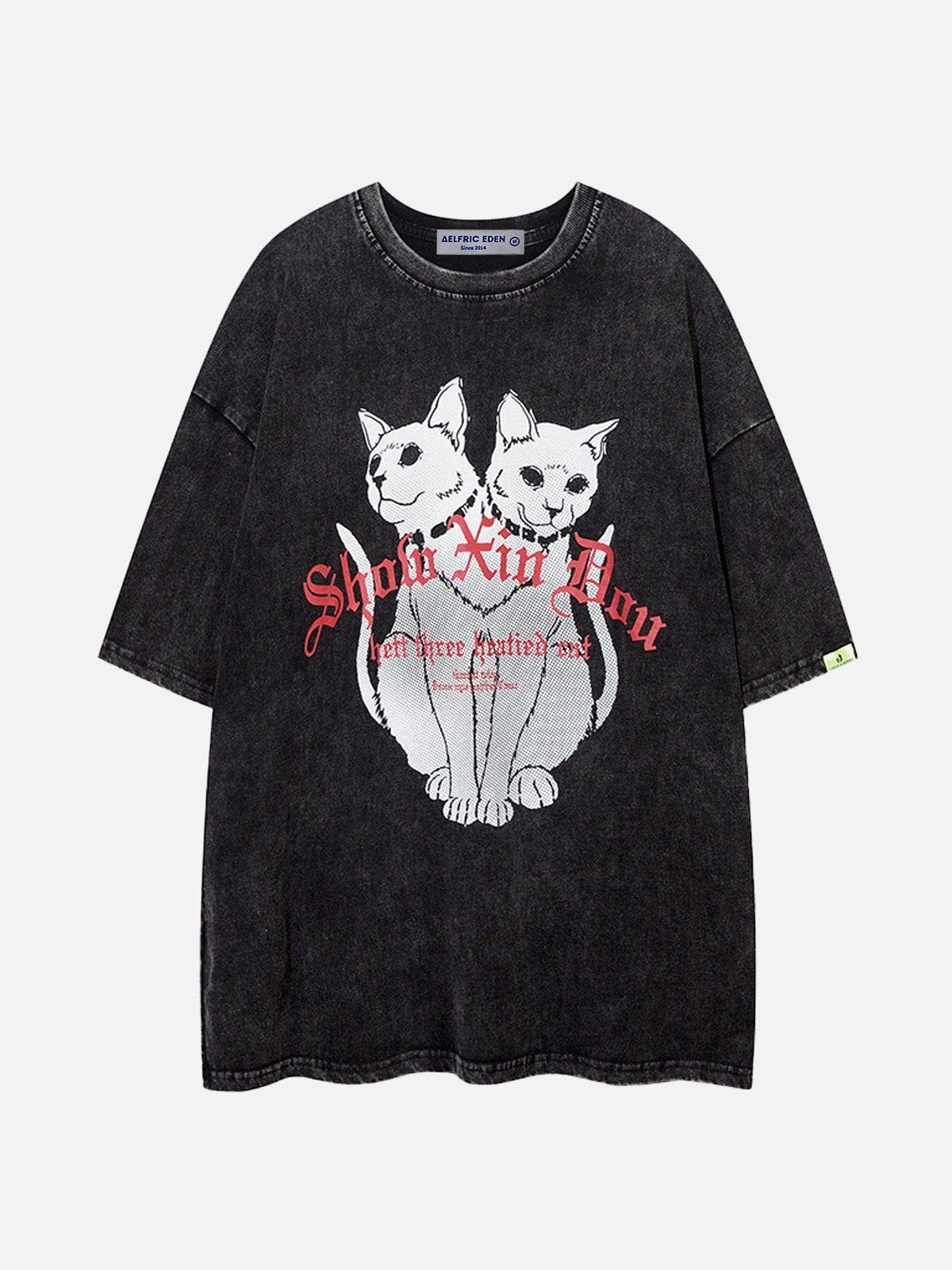 Stay pawsitively stylish wearing this Aelfric Eden Abstract Two-Headed Cat Print Tee! This purrfectly comfy cotton T-shirt is purrfect for all occasions. featuring an abstract two-headed cat print that's sure to make a meowvelous statement. Put your best purrfume paw forward and slip into this adorable tee!