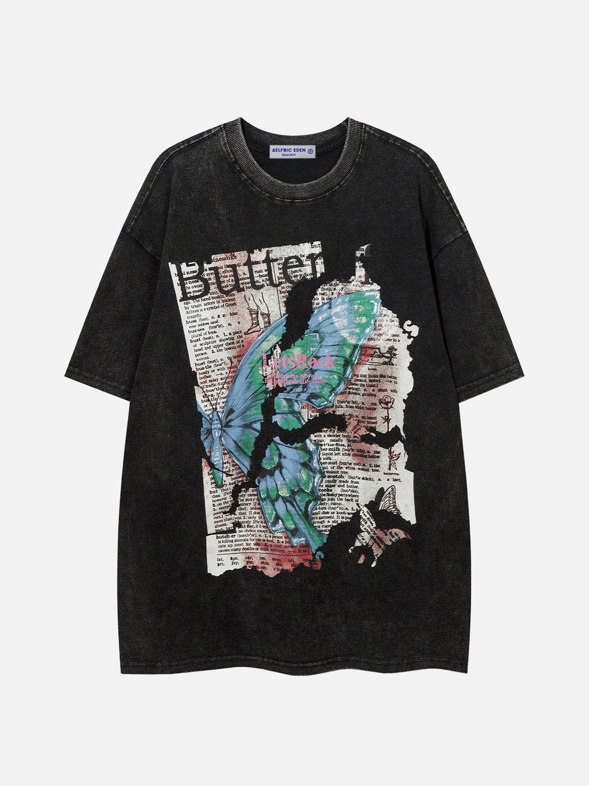 Be bold with your style and shout daring in this Aelfric Eden Broken Butterfly Print Washed Tee. Featuring a vibrant butterfly print and a washed. vintage vibe for an edgy look that radiates confidence. Crafted from cotton for maximum breathability and durability. Get ready for your adventure!