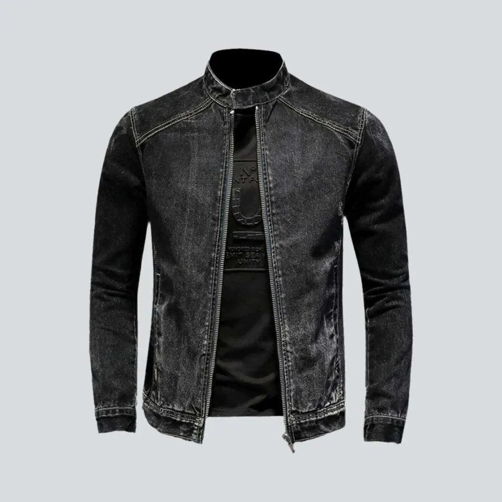 Be bold and stylish this season with our Autumn-Winter Collection riding-trend black jeans jacket for men! Crafted from premium quality denim. this slim. vintage. biker. black. zipper closure jacket is perfect for making a statement wherever you go. With a design inspired by the season's hottest trends. this jacket captures the essence of luxury and elegance. Featuring intricate pattern embellishments. a bootcut fit. and a smooth zipper. this jacket is a timeless classic with a modern twist.