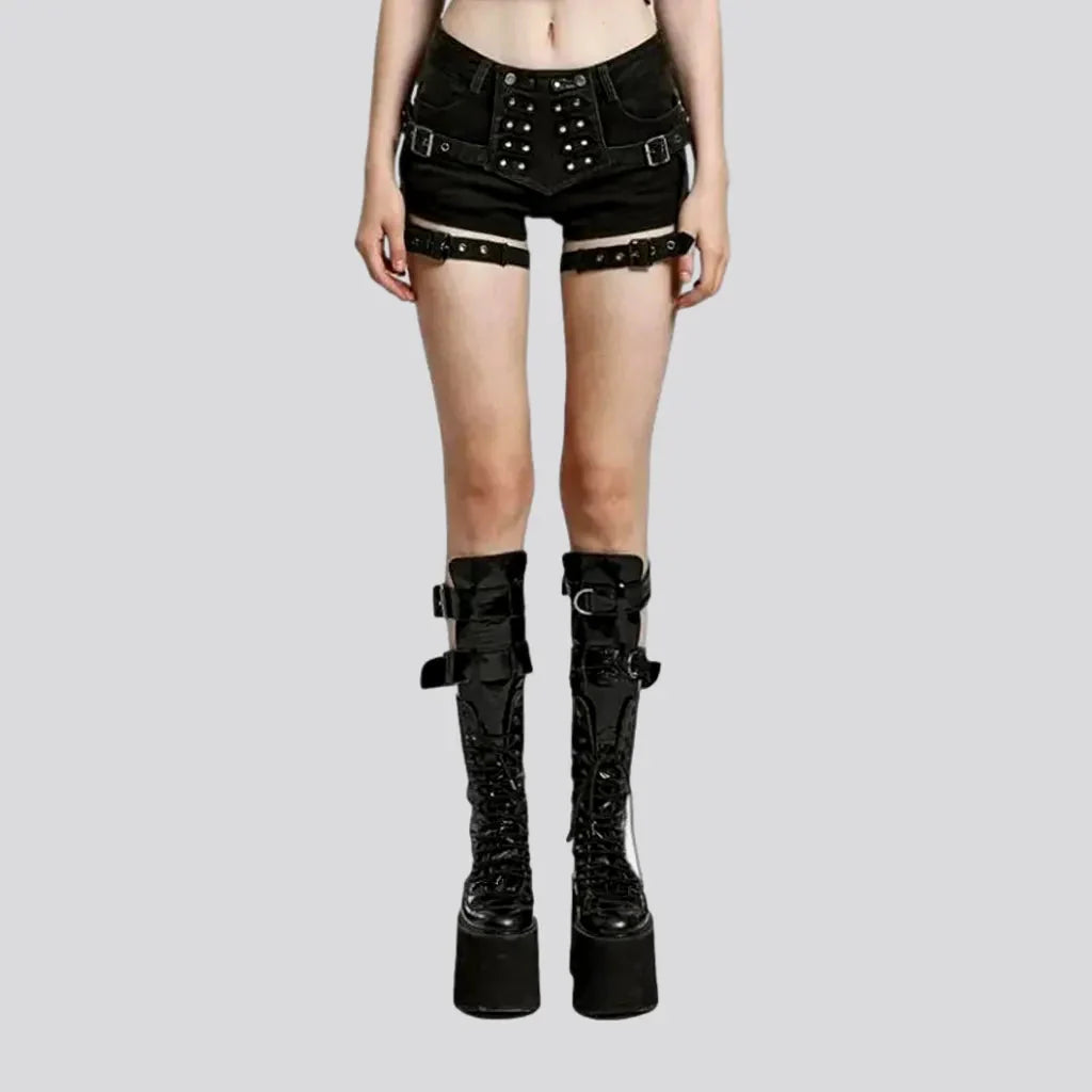 Introducing our black embellished jeans shorts for ladies. y2k style from the Spring Collection the perfect combination of elegance and trendiness!