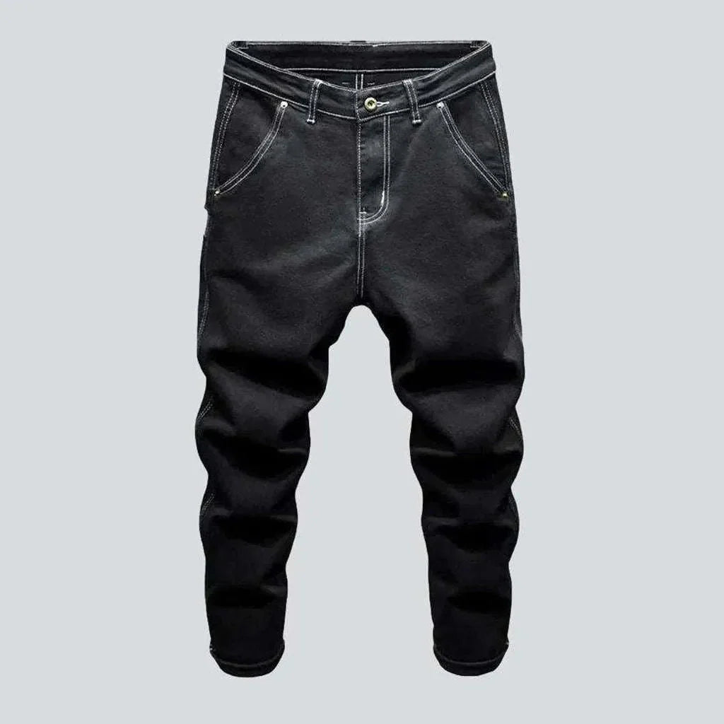 Be bold and be stylish with the Autumn Collection's black streetwear baggy jeans! Crafted to perfection. these jeans feature contrast stitching. a mid-waist silhouette. a zipper and button closure. and stretchiness for the perfect fit.