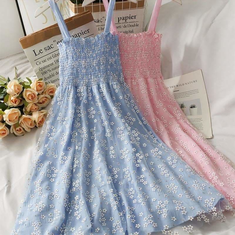 Blue/Pink/White Summer Floral Mesh Dress SS1804