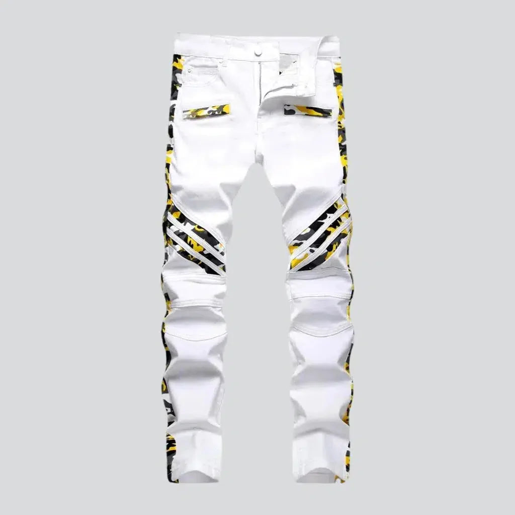 Introducing our street-mode bright print bands mid-waist jeans from the Autumn Collection a must-have for the trendy-forward! These skinny jeans are the perfect combination of edgy and chic. with a fashion twist that will elevate any outfit.