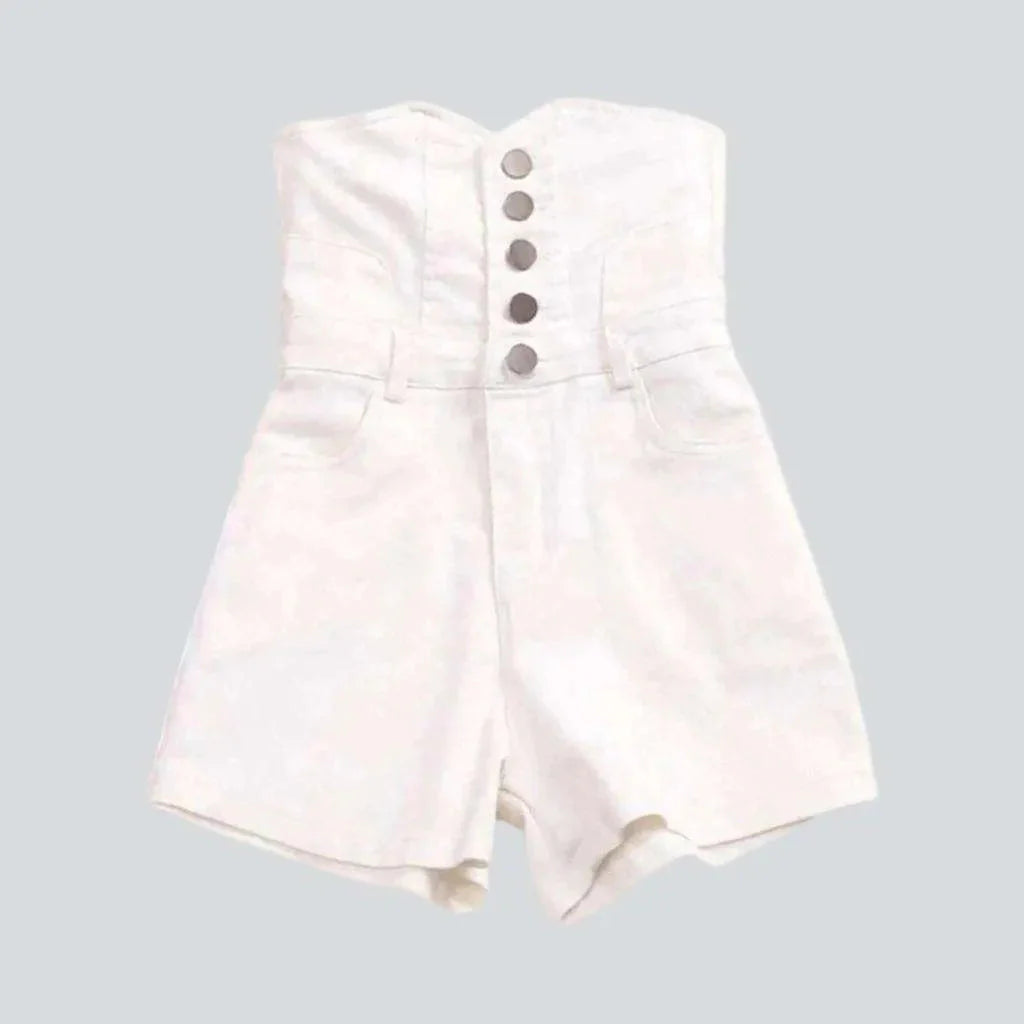 This season. elevate your wardrobe with our Summer Collection traditional style. women's buttoned corset denim shorts. Monochrome. slim. and high-waisted with a zipper and buttons closure. these shorts boast traditional sophistication and unparalleled comfort. Take your look to the next level and show off your fashion-forward flair!