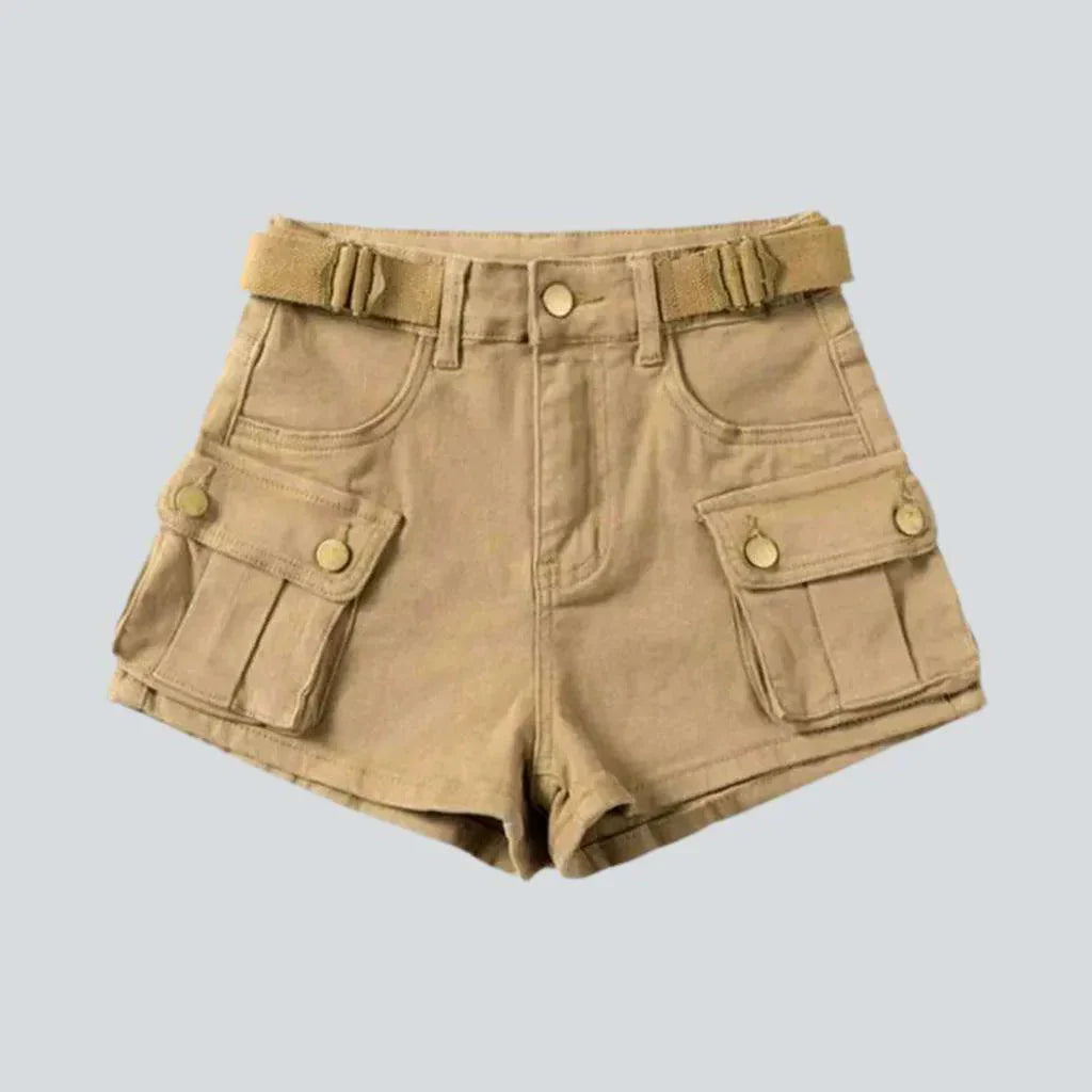 Introducing the Summer Collection's cargo tone women's denim shorts the ultimate vogue statement for modern women! With its high waist. wide-leg design. zipper and button closure. and vibrant color. these shorts will take your street style to the next level!