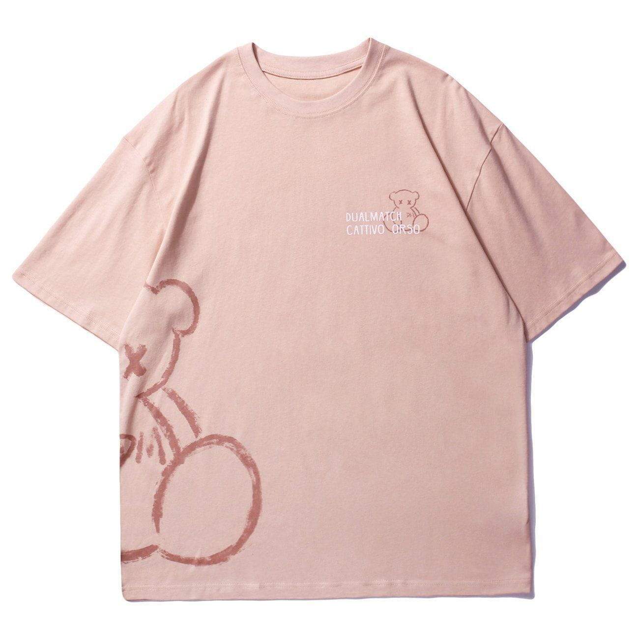 Original designer: Summer new style European and American personality trend hip-hop comfortable graffiti bear silhouette cotton short-sleeved T-shirt.