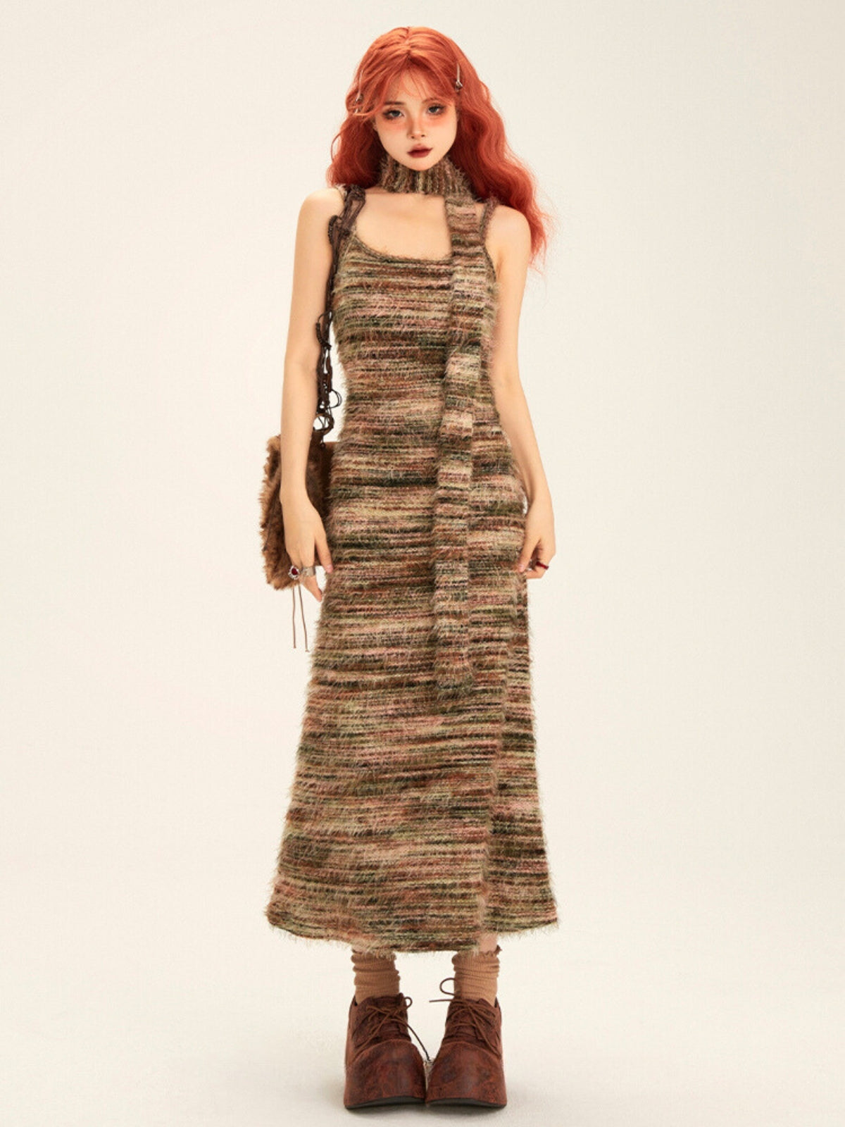 Contrast Color Knitted Long Dress