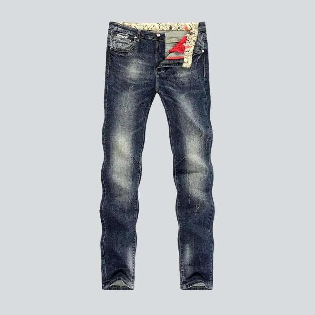 Level up your street trend with our Autumn Collection dark retro blue men's jeans! Crafted for the modern trendsetter. these vintage. slim fit jeans with a mid-waist fit promise to be the perfect shape for every occasion. With a zipper and button closure. you'll be turning heads with your unique and timeless look.