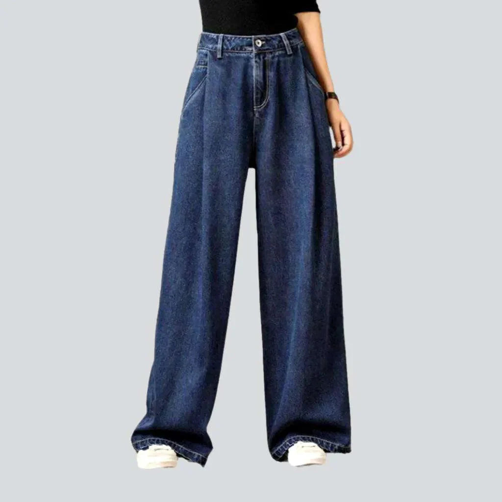 Introducing the Autumn-Winter Collection's Dark Wash Streetwear Mode Jeans for ladies stylish. informal and effortlessly chic! Our dark wash baggy jeans feature a tall-waistline silhouette. zipper and button closure. so you can flaunt your unique vibe with confidence.