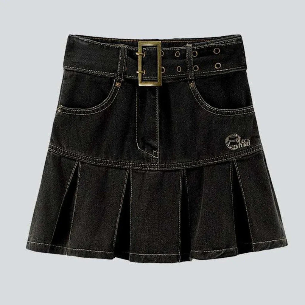 Flaunt your unique style with this Denim Skater Skirt from the Summer Collection! This y2k-style micro skirt features an ornamented waistline. mid-waist fit. zipper and button closure. making it both carefree and stylish. Perfect for making a statement. this skirt will have you ready to steal the spotlight!Distinctive Features: