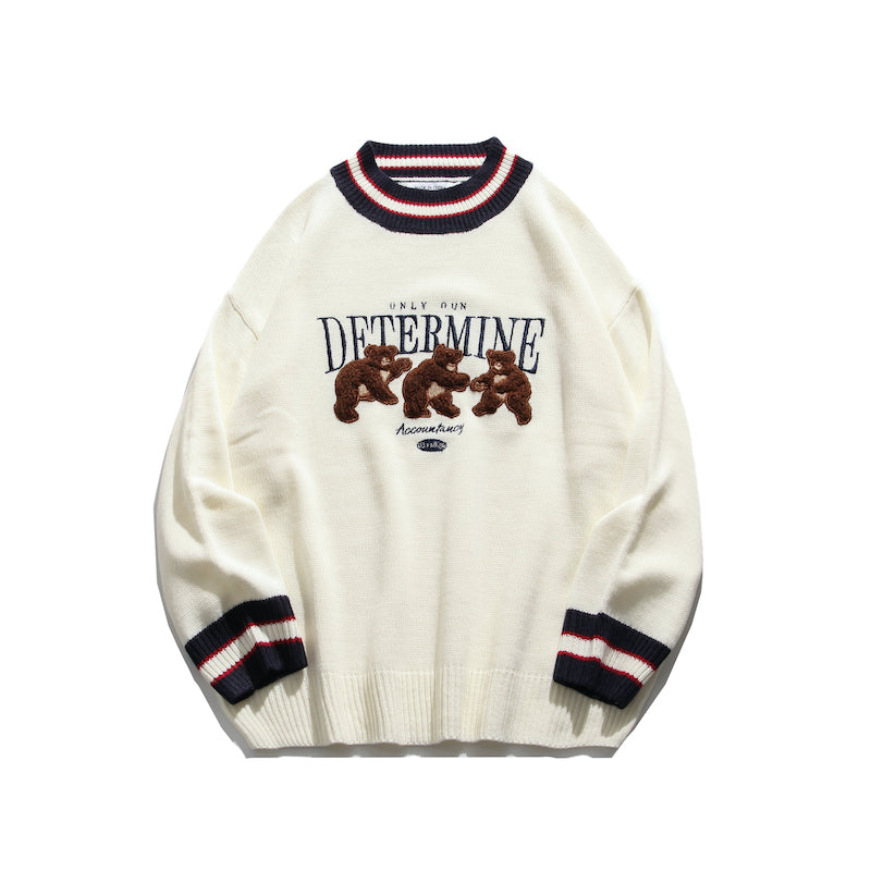 Grab the most cool WLS "Determine" Sweater. for an outstanding look and a warm notion. Incredibly strong and durable. it maintains its colors even after washed several times. Highly elastic material. making you freely move without any restrictions. Its amazing style consists of three cute embroidered teddy bears. and elastic cuffs and waistband. available in white or black color.