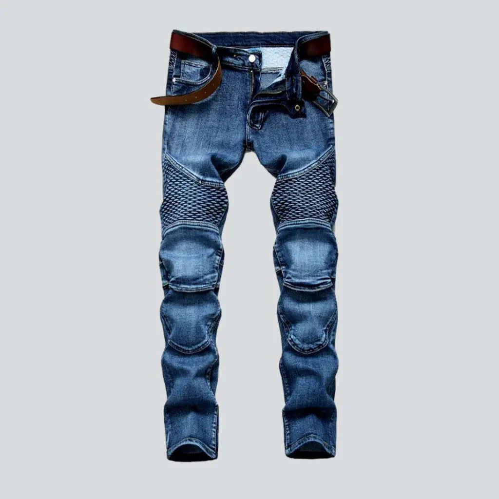 Make a statement in mode with our blue moto men's jeans from the Autumn Collection. Crafted with premium denim. these jeans are designed with a mid-waist. slim-fit. and zipper & button closure for a timelessly chic look. With an intricate embroidered pattern and a slightly stretchy fabric for added comfort. these jeans will surely turn heads wherever you go!