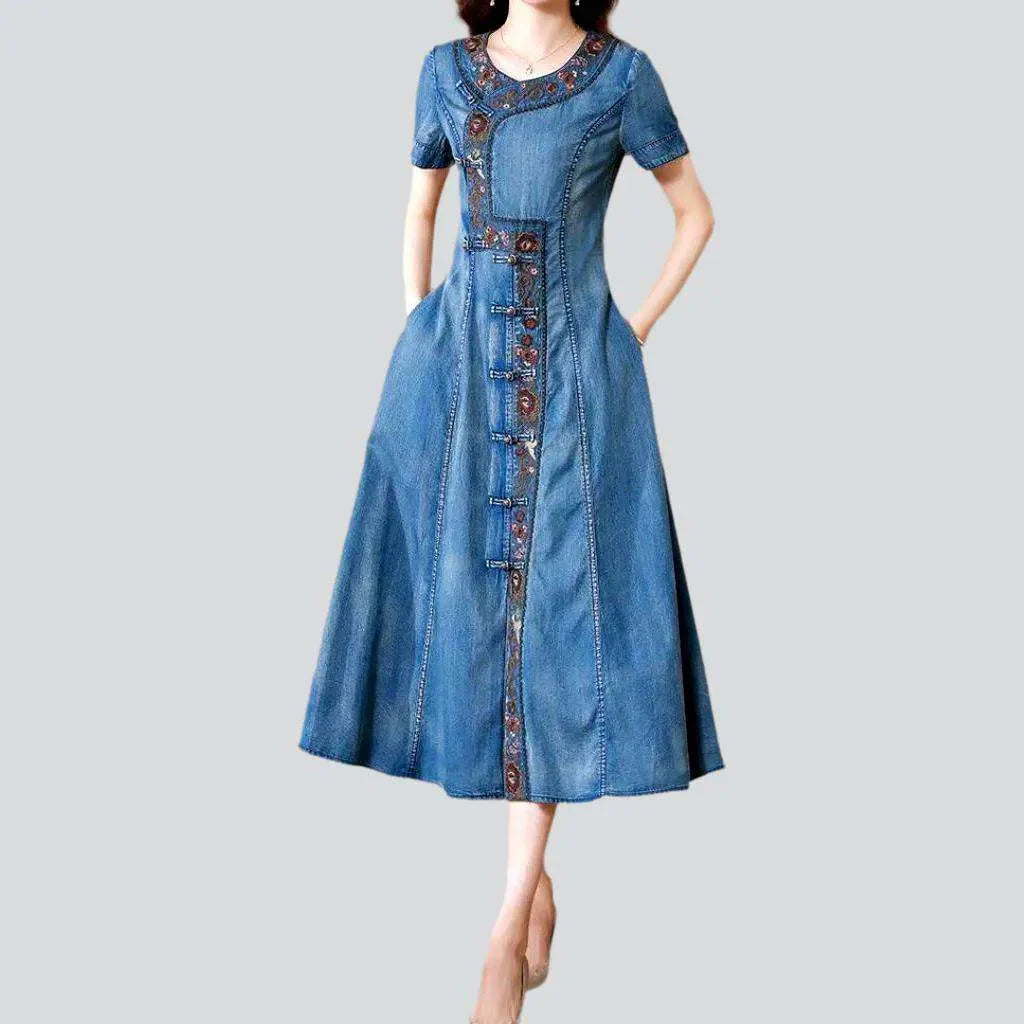 This exquisitely crafted dress is the epitome of casual chic. combining the timeless appeal of denim with sophisticated design elements to create a standout piece that is both trendy and comfortable. Whether you're heading to a summer party or a casual day out. this dress ensures you step out in style.