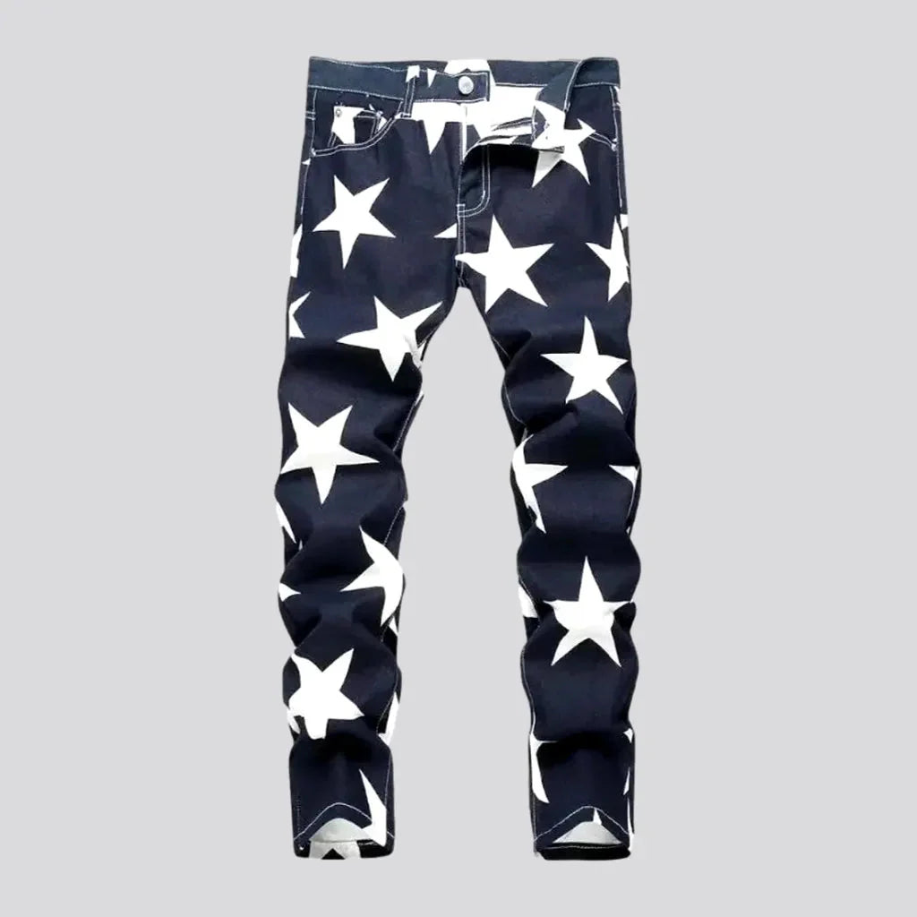 Introducing our vibrant men's denim pants. perfect for spring and summer. featuring a trendy star pattern that elevates your street style game to new heights.