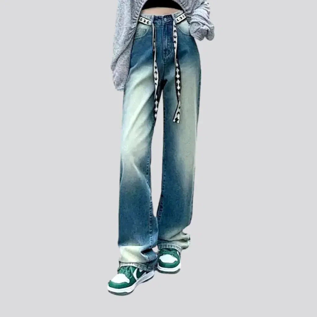 Crafted with a focus on both flair and comfort. these jeans embody the essence of vogue vogue. The wide-leg silhouette. vintage medium-wash. and high-rise design make these jeans a versatile addition to any wardrobe.