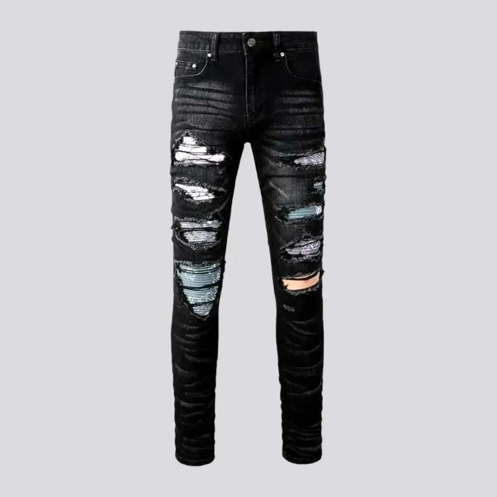 Elevate your style with our grunge black jeans for men from our Summer Collection. These jeans embody the urban and alternative alternative style. perfect for the fashion-forward man. With a distressed and sanded effect. these jeans have a worn-in look that exudes effortless coolness. The patchwork design adds a unique touch to the timeless black jeans. making them stand out from the crowd.