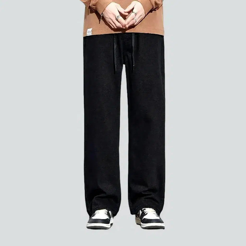 Crafted with utmost attention to detail. these monochrome jeans effortlessly fuse the iconic 90s fashion with the latest trends. The baggy silhouette and high-waist design. coupled with drawstrings closure. make them a standout piece in any wardrobe. exuding confidence and trend.
