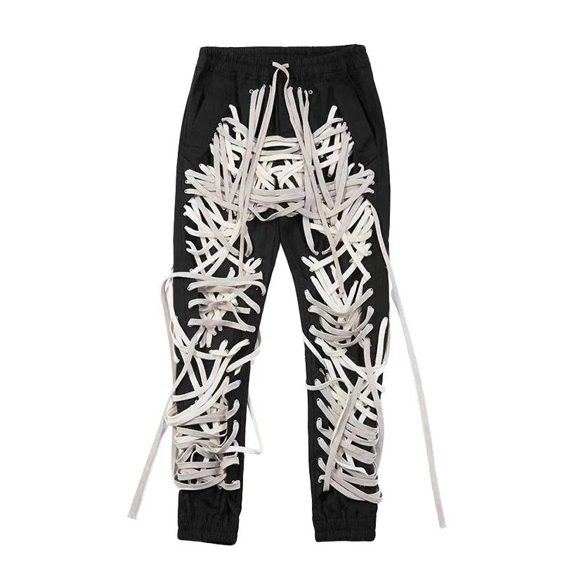 High Waist Patchwork Slim Tie Pants