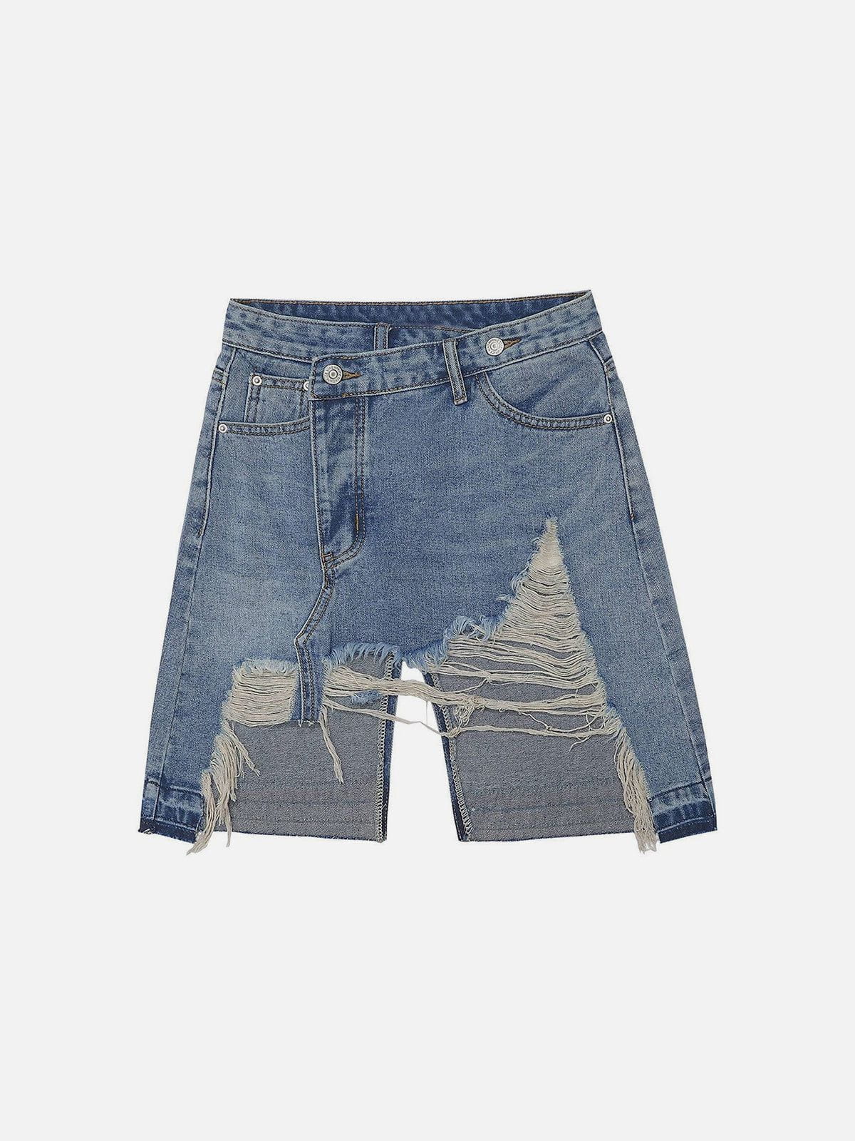 These hole distressed shorts are the epitome of trendy and edgy style. The slim fit design hugs the body in all the right places. giving a flattering and modern silhouette. Made from high-quality denim fabric. these shorts are not only durable but also comfortable to wear. The hole distressed details add a touch of ruggedness and a rebellious vibe to the overall look.