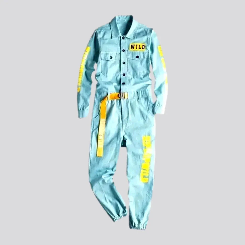 Introducing our Men's Denim Jumpsuit Overall. a masterpiece from our Summer Collection that combines Y2K style and contemporary flair.