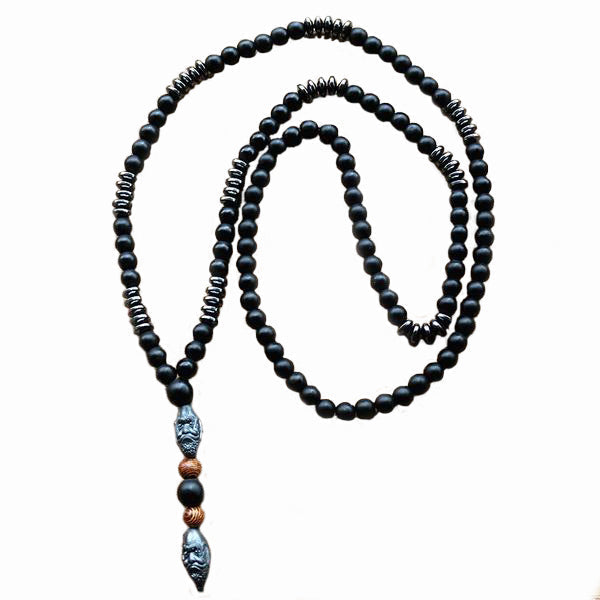Kamigami Beaded Necklace features an old man face and ethnic designed necklace. From the chain to the pendant. this is made from hematite. a particular type of natural stone or mineral.