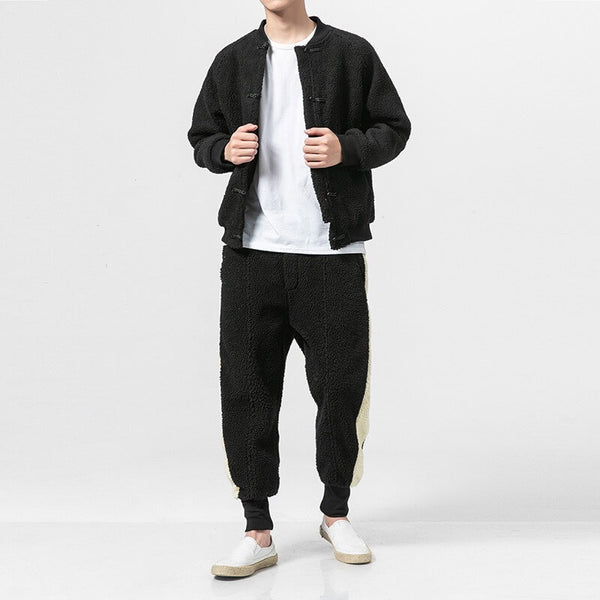 Keep a little tradition alive with the Kedarake Jacket & Pants Set. This set composes a jacket with a traditional buton and matching pants in two tones. Each is soft and comfortable to wear as both are designed from furry fabric.