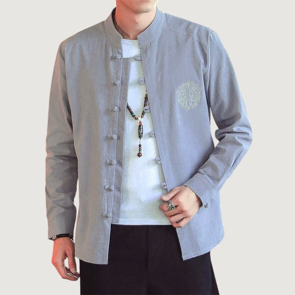 Kezumi Long Sleeve Shirt comes in a simple yet striking look in full long sleeves in plain solid color from black to blue to red to white. This is made from cotton and linen. and designed in a Japanese-inspired neckline and buttons.