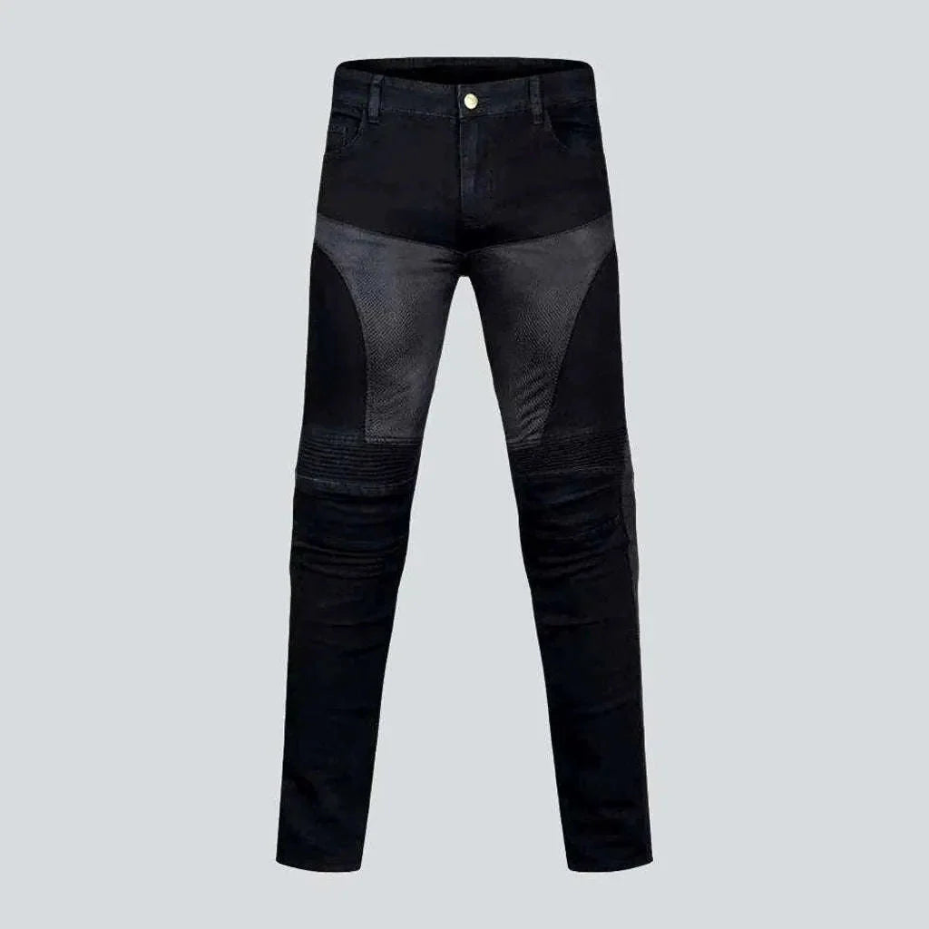 Introducing the Summer Collection for men the breathable. biker-flair knee-pads stonewashed riding jeans! Perfect for the modern man who seeks the perfect balance between protection and style. these tight mid-waist jeans are designed to elevate your look and keep you comfortable.