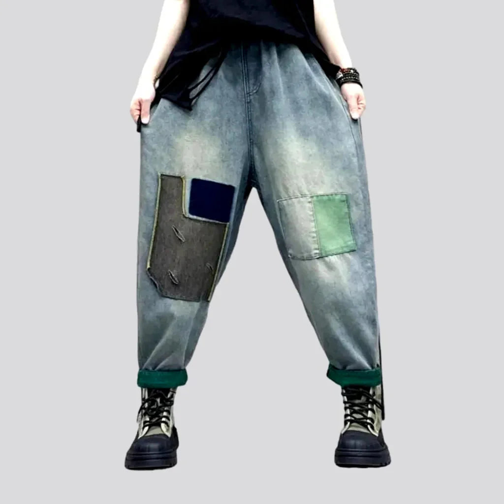 Elevate your style game with our light-wash vintage denim pants from the Summer Collection. These fashion-forward pants feature a baggy. patchwork design that exudes a trendy. trendy vibe while paying homage to vintage styles. The sanded finish adds depth and character to the pants. making them a unique addition to your wardrobe.