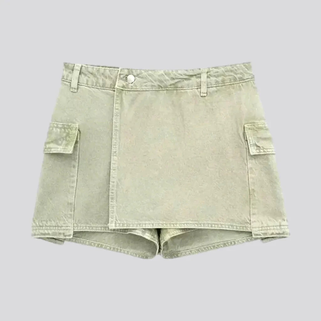Elevate your summer wardrobe with our miniature cargo denim skort for ladies. a must-have from our Summer Collection!