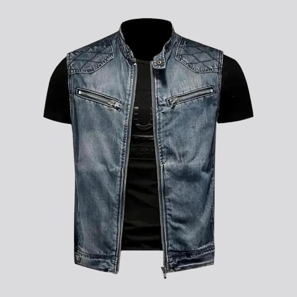 Introducing our Slim Mixed-Fabrics Stitched Vintage Short-Sleeve Biker Denim Shirt from the Summer Collection! This edgy and stylish shirt is a must-have for any trendy-forward man looking to add a touch of riding style to their wardrobe.