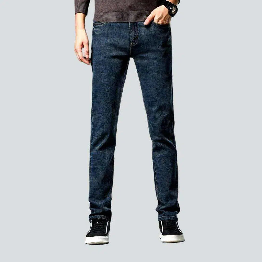 Celebrate this Autumn with men's city style dark jeans from our Collection! Perfectly tailored for the trendy man. these jeans are a harmonious blend of street style and vintage couture. Featuring a shaping fit. high-waisted silhouette. and zipper and button closure. this piece is sure to make a statement.