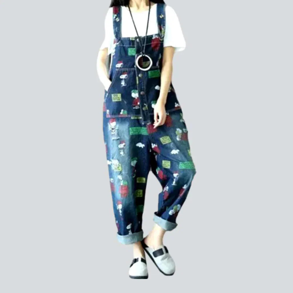 Our overall seamlessly blends contemporary Y2K style with a playful. laid-back aesthetic. It's an ideal piece for anyone wanting to embrace the fashion-forward vibe of painted. baggy denim enhanced by a charming cartoon print. Crafted with the finest cotton and quality denim materials. these overalls promise comfort and durability. Sanded for that coveted worn-in look and finished with a medium wash. it's ready to turn heads wherever you go.