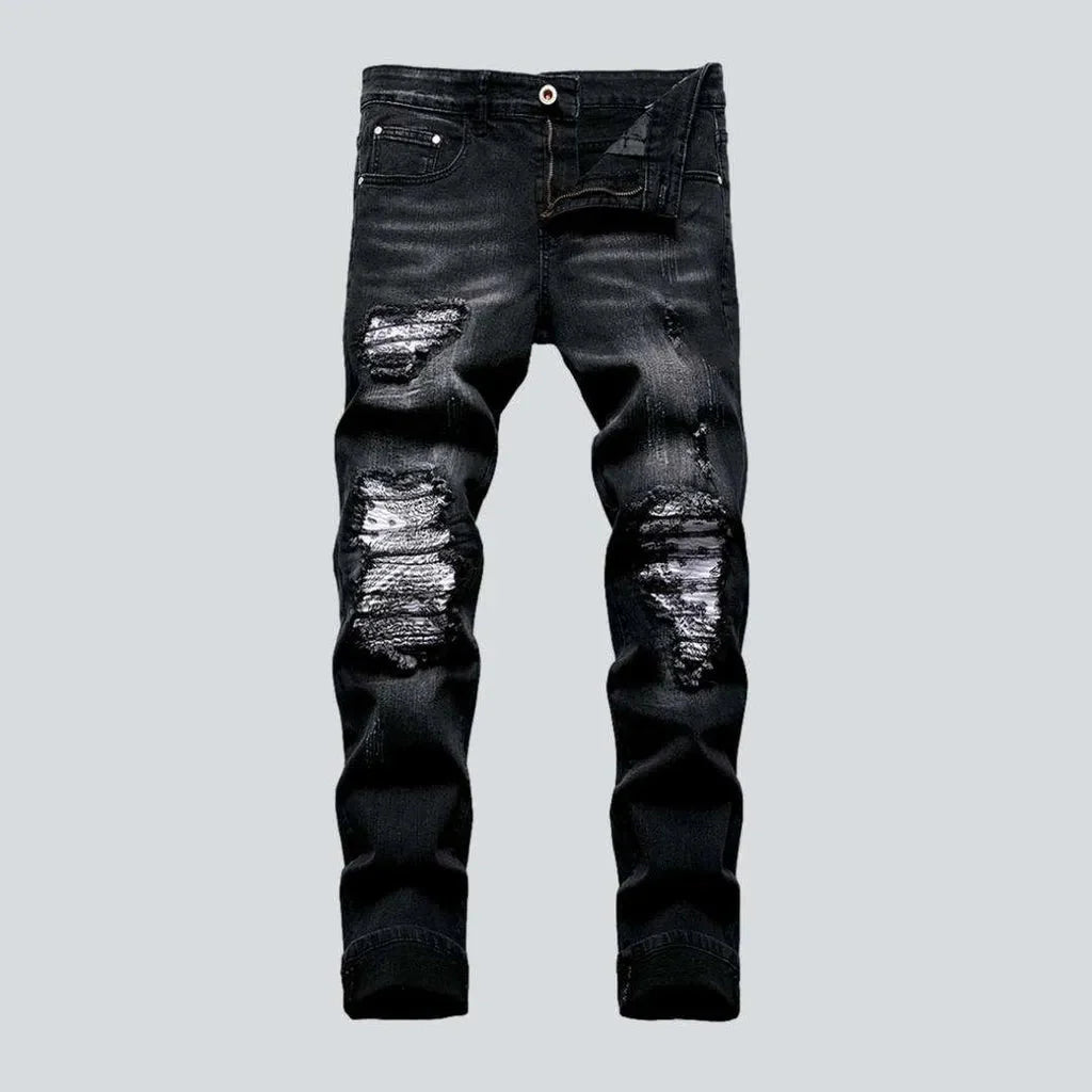 Be the trendsetter with this men's biker jeans from the Autumn Collection. Whether you're looking for a unique look for a night out or just a casual pair of jeans. these patchwork knees biker jeans are the perfect choice. Get yours today and turn heads everywhere you go!