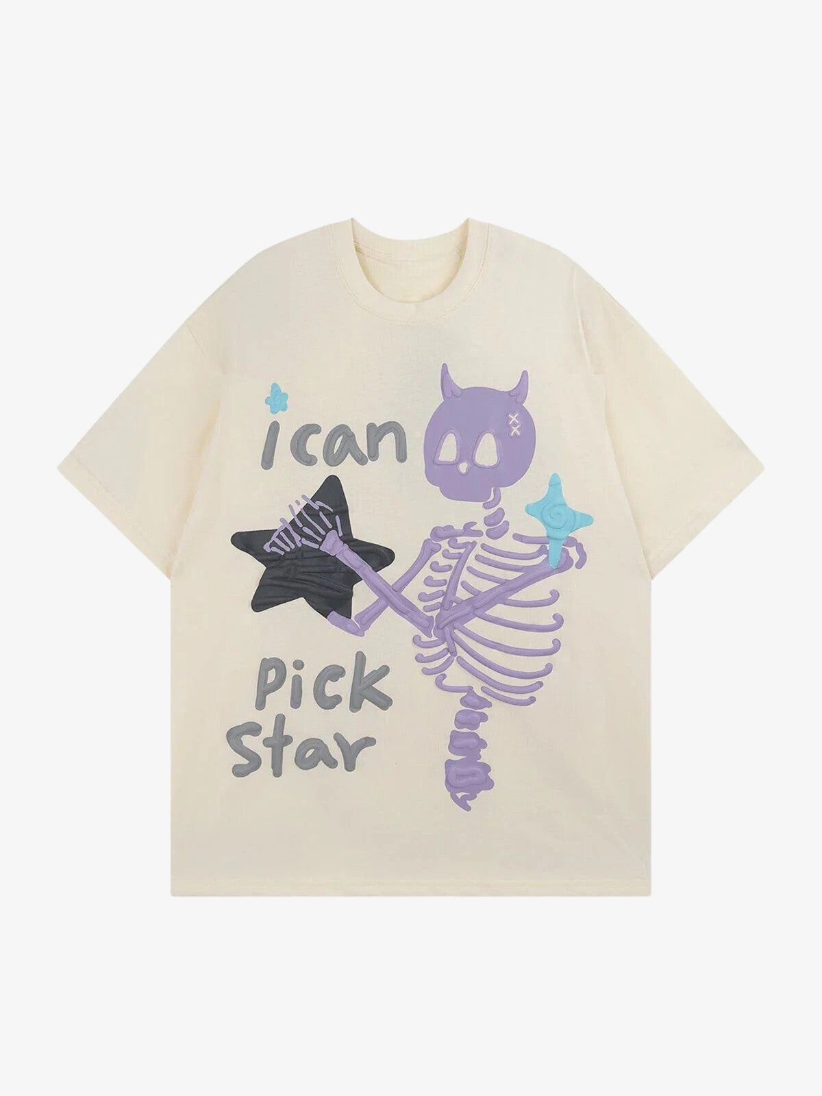 Gettin' this skeleton demon graphic tee! Cut from cotton. it features skeleton demon graphic to decorate. whether you are a fashion match or a daily commute. You definitely cannot miss it!