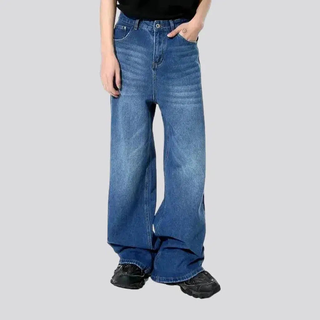 Experience the ultimate combination of comfort and style with our baggy. vintage-inspired jeans. The sanded and whiskered detailing adds a unique touch. while the floor-length. high-waist design is a nod to the latest fashion trends. The zipper and button closure provides a secure fit. ensuring you look and feel your best all day long.