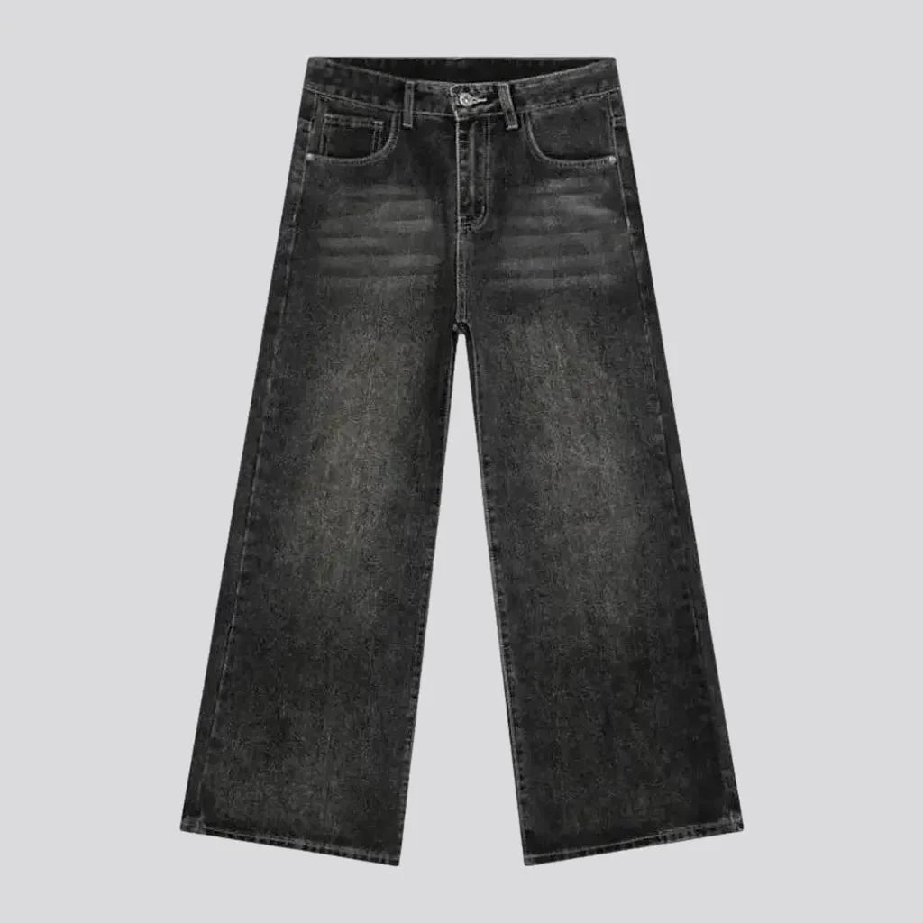 Introducing our men's baggy jeans. where 90s nostalgia meets modern fashion in a perfect blend of comfort and style for the fall season. Designed with a mid waist rise and long length. these jeans offer a relaxed fit that embodies a boho. street-ready vibe. The vintage. whiskered pattern adds a touch of uniqueness. while the smoothed surface ensures you look sharp no matter the occasion.
