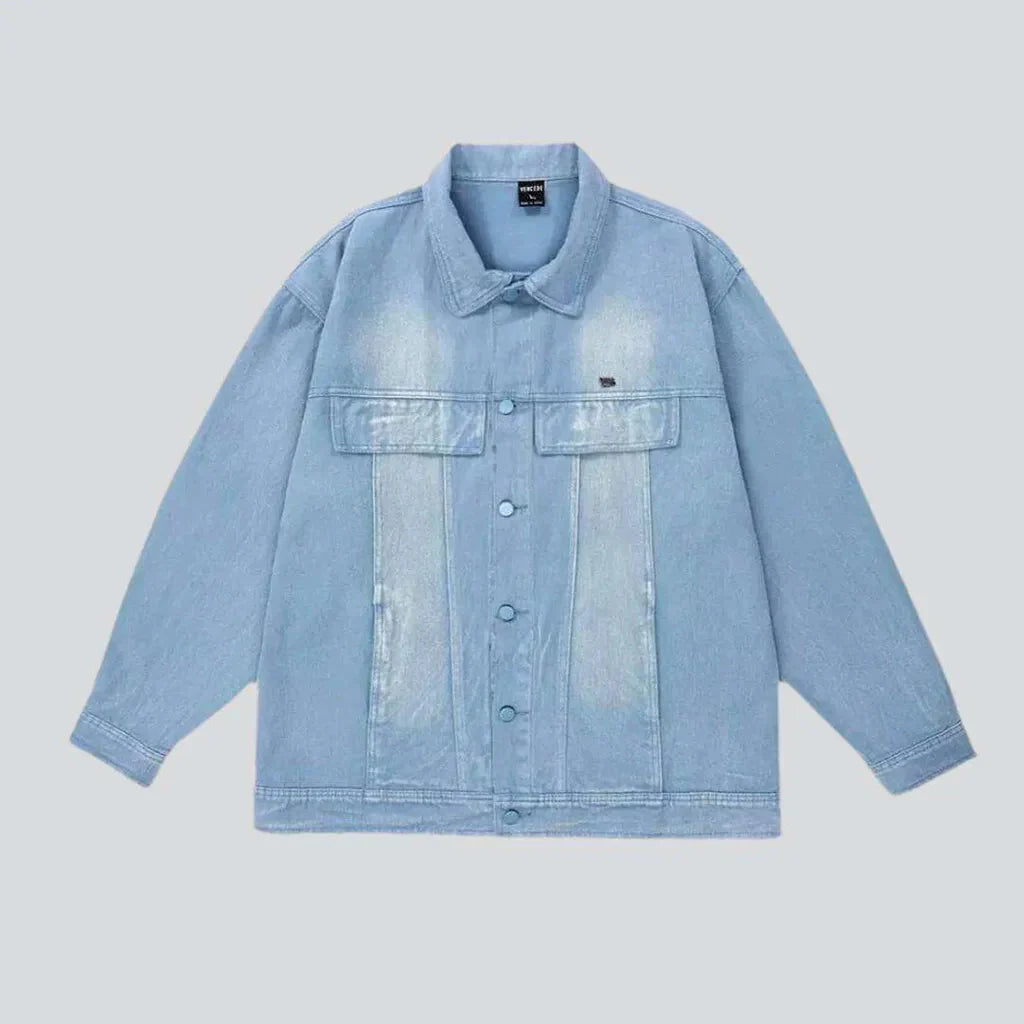 Elevate your urban style this season with our Spring-Summer men's denim jacket. Featuring sanded. oversized. and buttoned closure. this urbane-inspired jacket oozes effortless charm and everlasting sophistication. Crafted with luxe denim for unparalleled comfort and versatility. this jacket is the perfect blend of vintage allure and contemporary modern.