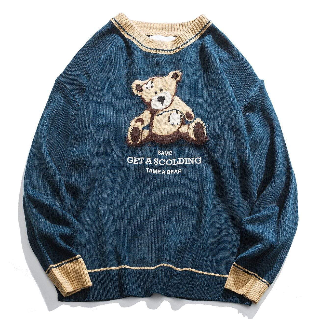 Original designer: European and American spring and summer new trendy hip-hop cartoon bear three-dimensional jacquard knitted sweater.
