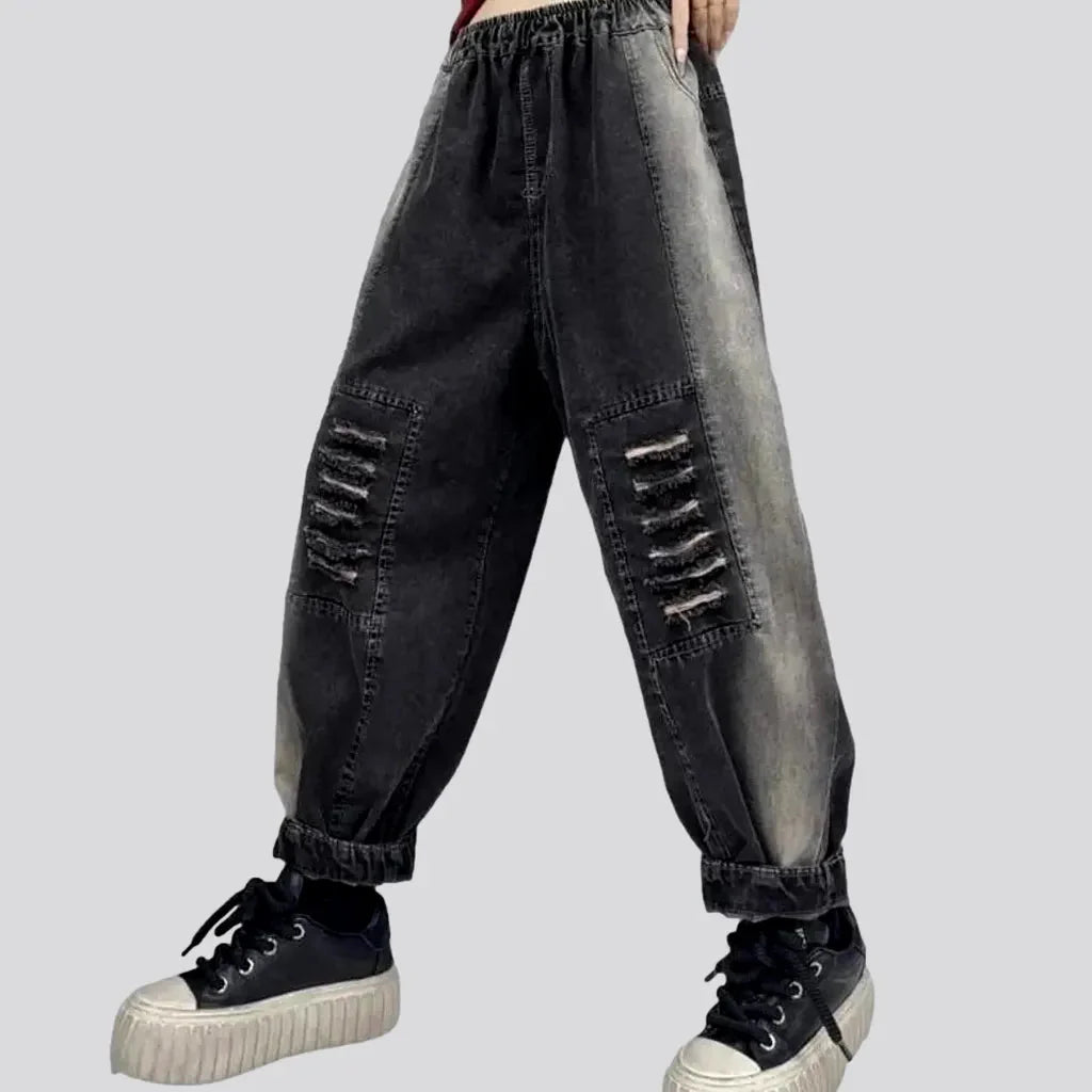 Elevate your wardrobe with our side-bands distressed denim pants for ladies from the Spring-Summer Collection a must-have for the trendy grunge girl!