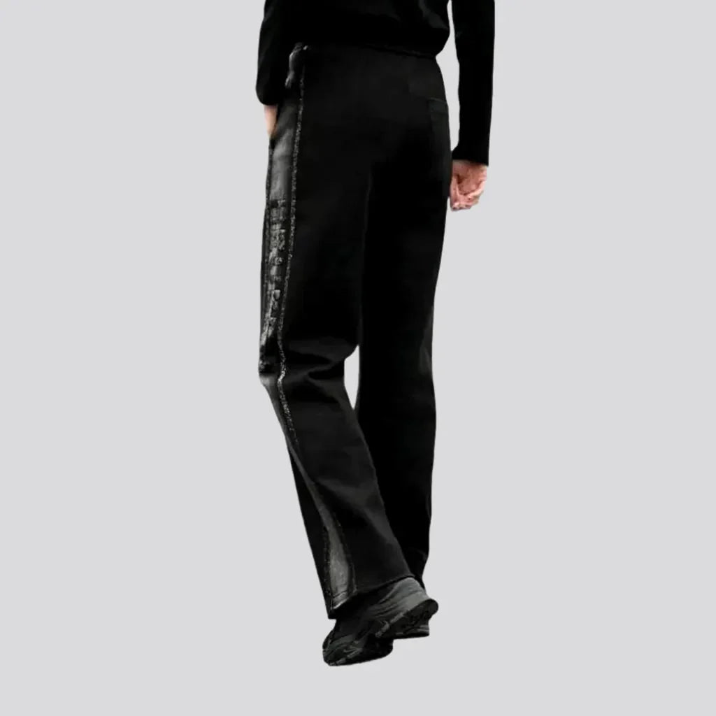 Make a statement with these millennium style jeans and embrace the early 2000s in all its glory. The painted design and inscribed side-bands add a unique touch to these jeans. making them a true couture statement. So. whether you're heading to a music festival or a night out with friends. these jeans will make you stand out from the crowd.