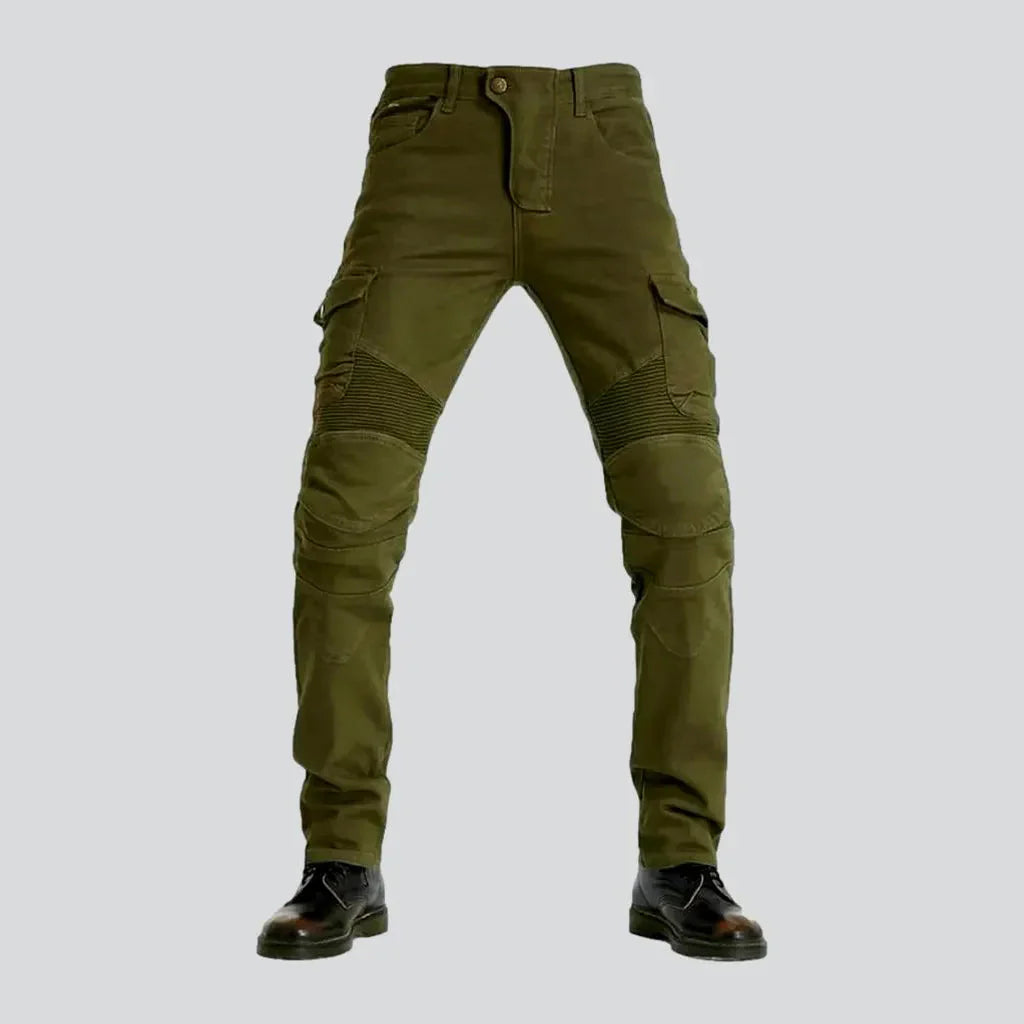 With a bold and trendy design. these slim moto men's denim pants are the perfect addition to your wardrobe for the Spring season. Whether you're hitting the road on your motorcycle or just looking to make a statement. these pants are sure to turn heads and make you feel confident and stylish.