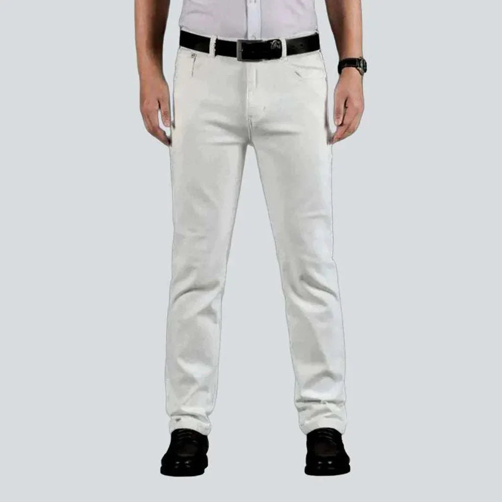 Durable and comfortable. these jeans offer a perfect fit with its high-waisted form and zipper & button closure. The white fabric radiates a sleek and ageless look. perfect for any occasion.