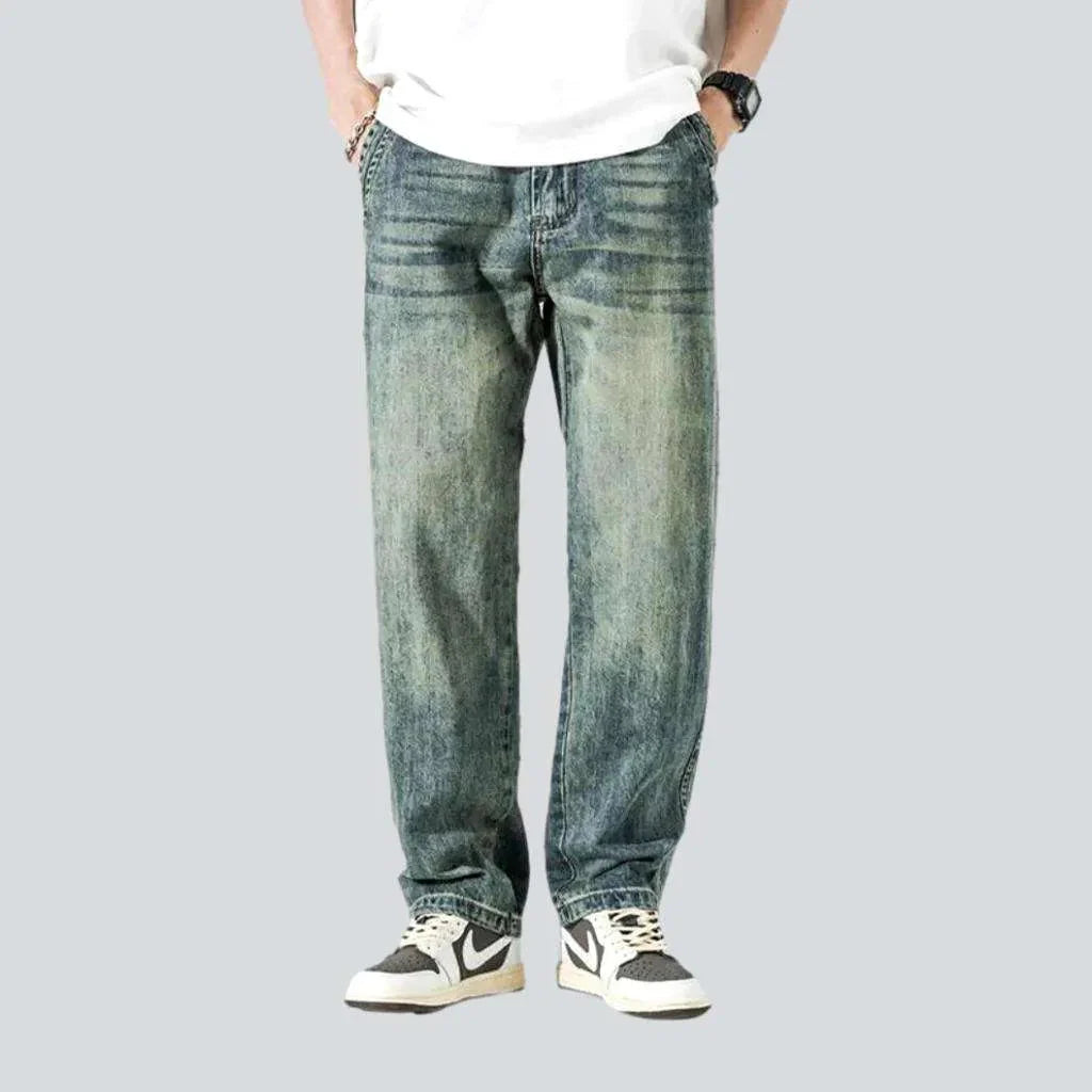 Be the envy of the town with our street style men's vintage jeans from the Spring-Summer Collection! Crafted with a mid-waist fit. these jeans are sure to bring out the best of your edgy-style look. With a zipper and button closure. these jeans are textured to ensure ultimate comfort and convenience. The classic baggy fit is further enhanced by whiskered details and a sanded finish for a traditional vintage look. The finishing touch is a stonewashed treatment. ready to up your fashion game!