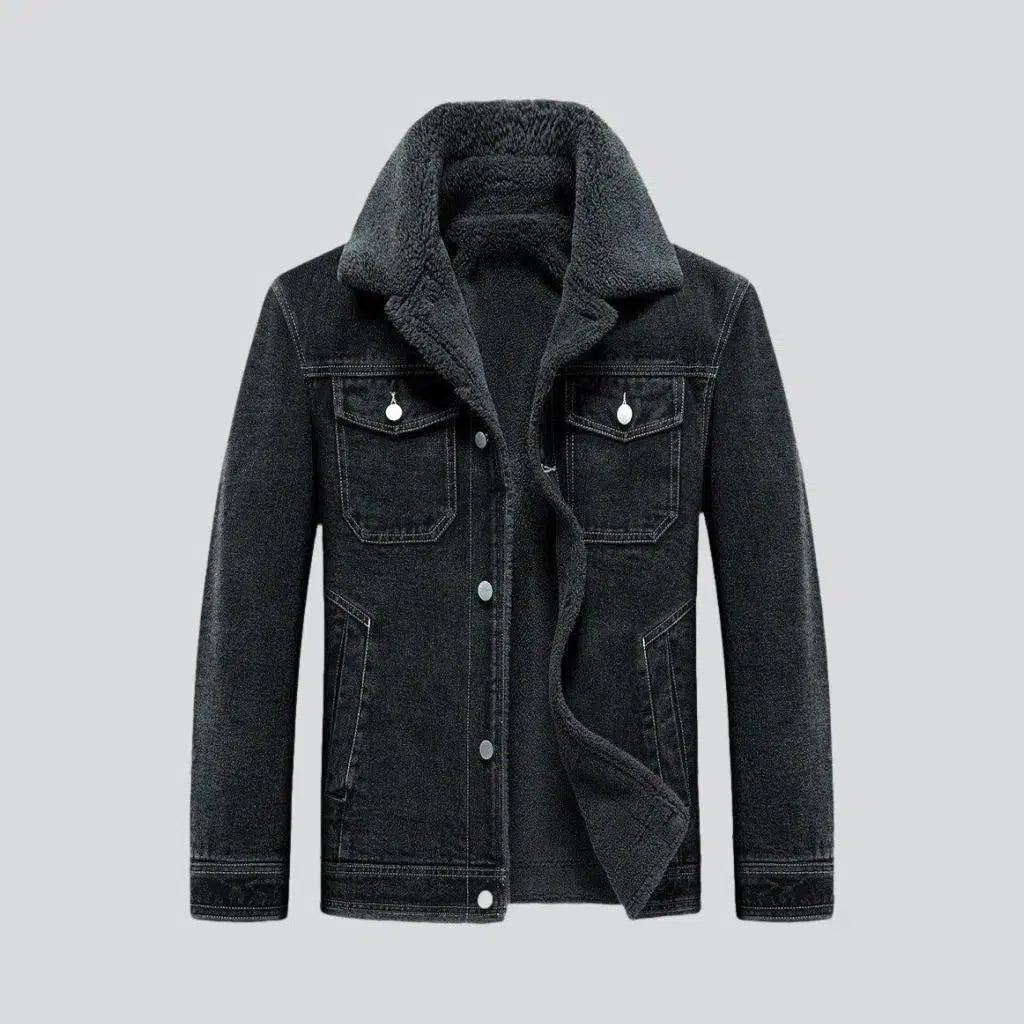 Introducing our Laid-back Sherpa Denim Jacket for Men from our highly anticipated Autumn-Winter Collection. This jacket exudes laid-back style with its slim silhouette and aged charm. making it a must-have for any trendy-forward wardrobe.