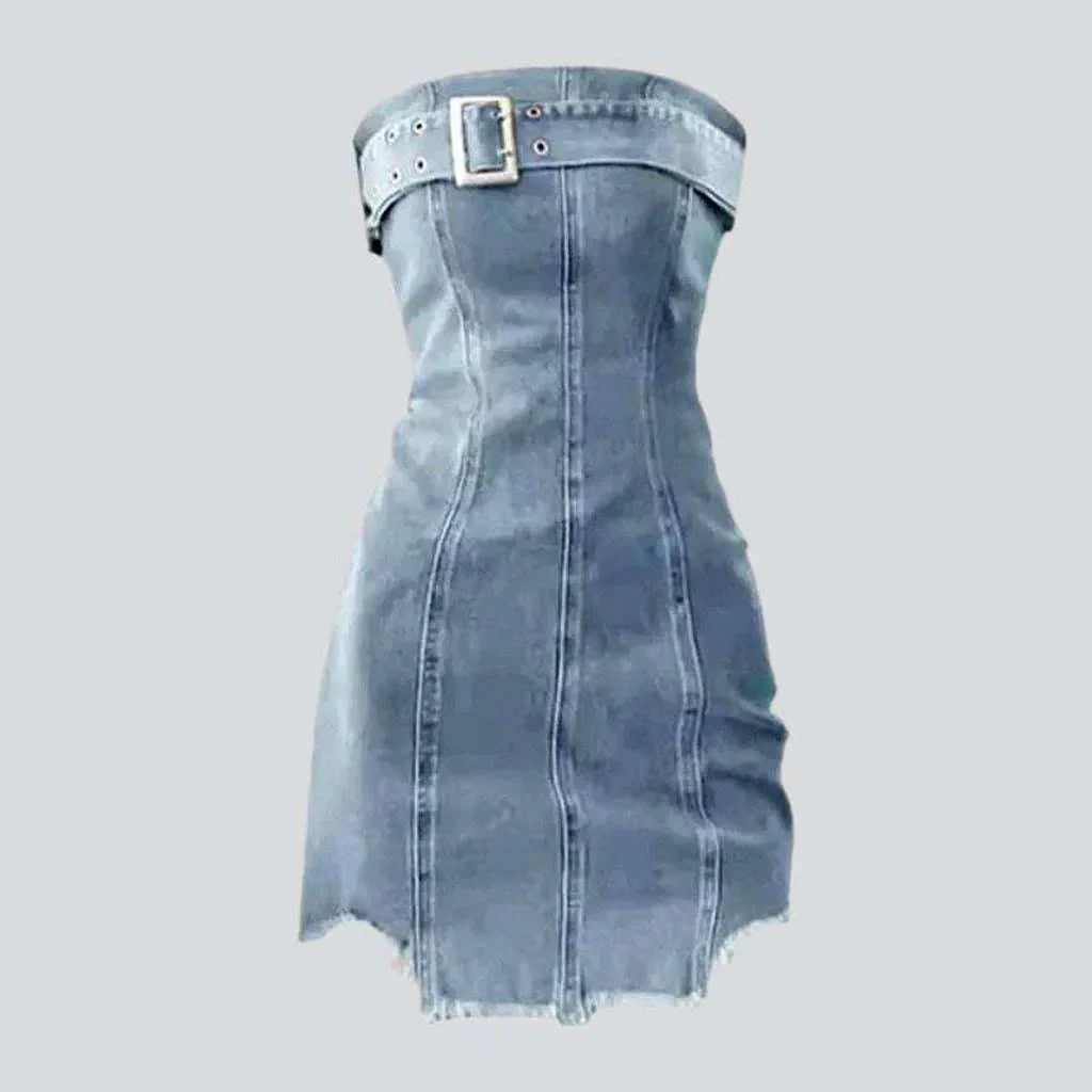 Discover the epitome of summer party fashion with our y2k sheath jean dress �an embodiment of vintage charm rejuvenated for the modern era.